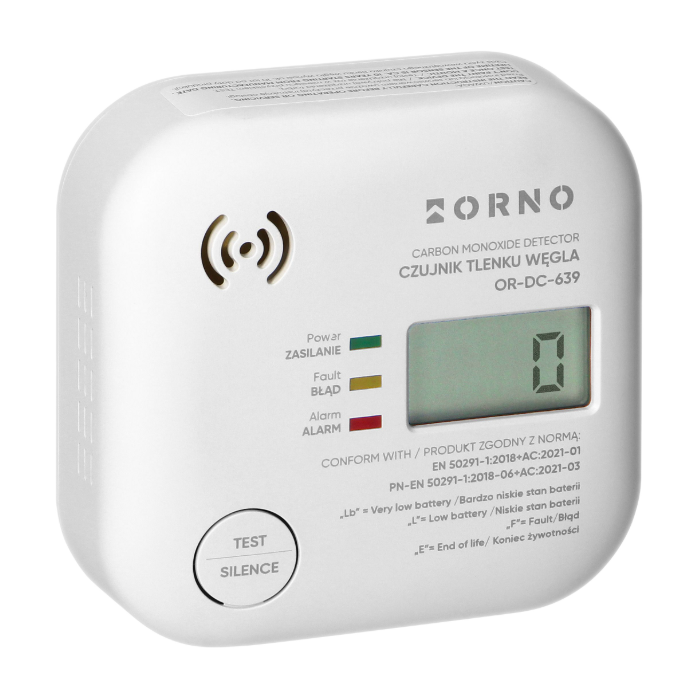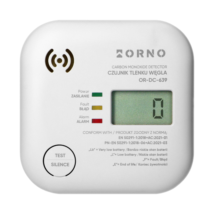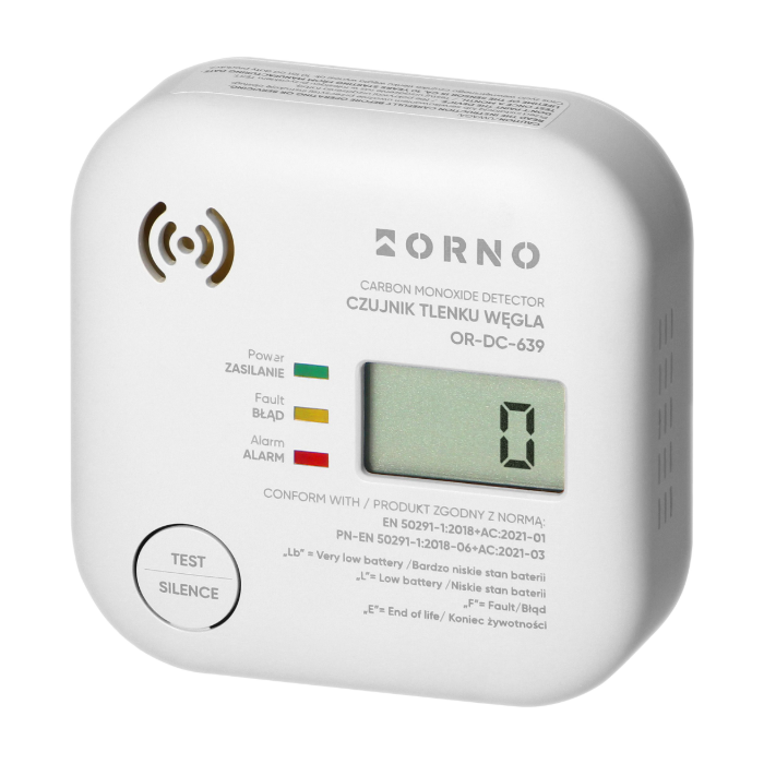 Czujnik tlenku węgla Orno OR-DC-639 pozwala na ciągły monitoring stężenia tlenku węgla CO (czadu) w powietrzu oraz wykrywania i alarmowania o przekroczeniu maksymalnego bezpiecznego stężenia tego gazu. Posiada wysokiej jakości czujnik elektrochemiczny oraz wyświetlacz LCD pokazujący poziom stężenia tlenku węgla w zakresie od 20 do 500 PPM. Przekroczenie dopuszczalnego poziomu CO sygnalizowane jest optycznie oraz akustycznie.