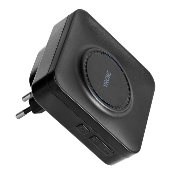 Bezprzewodowy dzwonek VIRONE TELERO AC DB-8/B działa bez baterii – odbiornik podłącza się do gniazdka.