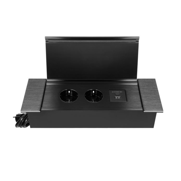 Wpustowe gniazdo meblowe ORNO OR-GM-9048(GS)/B z płaskim, frezowanym rantem to praktyczny i estetyczny element wyposażenia, który dobrze sprawdzi się zarówno w przestrzeniach domowych, jak i biurowych.