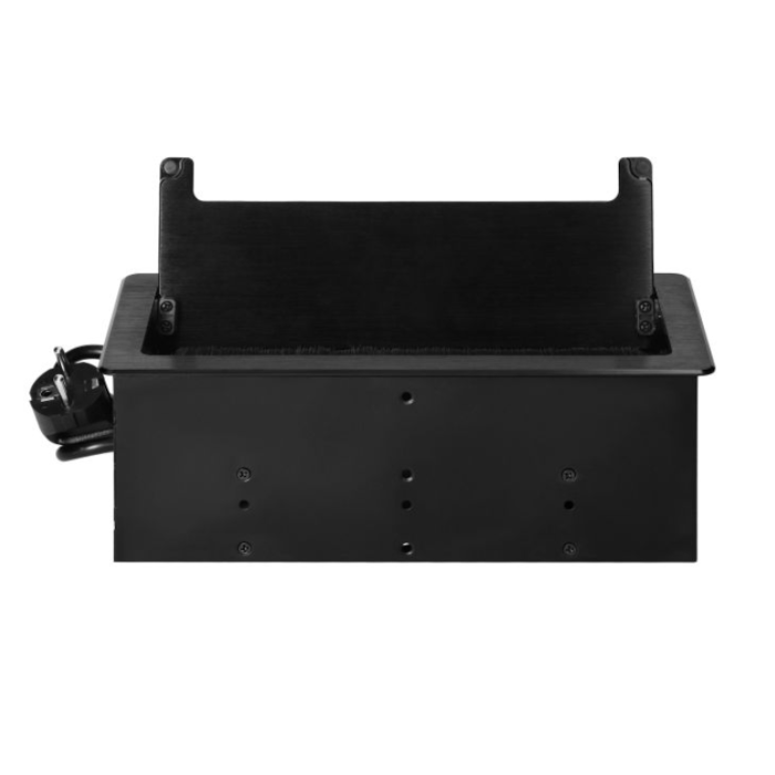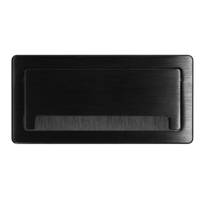 Model posiada płaski, frezowany rant o grubości 2 mm, dzięki czemu po montażu pozostaje niemal równo z powierzchnią blatu. Dodatkowo obudowa została wyposażona w szczotkę chroniącą wnętrze przed kurzem.