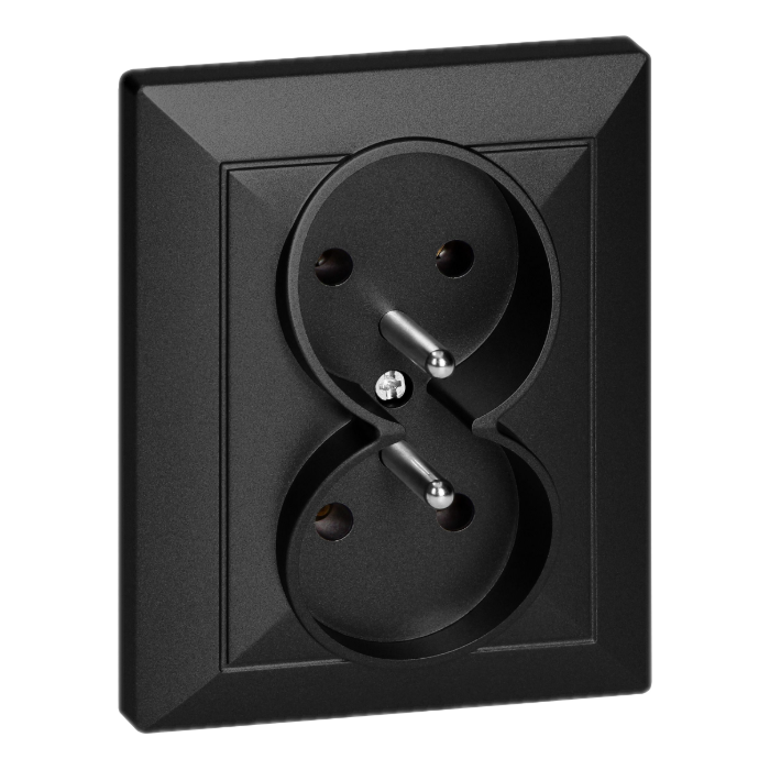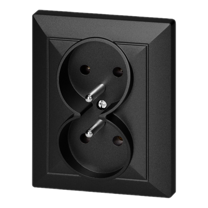 Gniazdo podtynkowe, podwójne 2x 2P+Z, z uziemieniem Orno OR-OE-7706/K/B, typu francuskiego