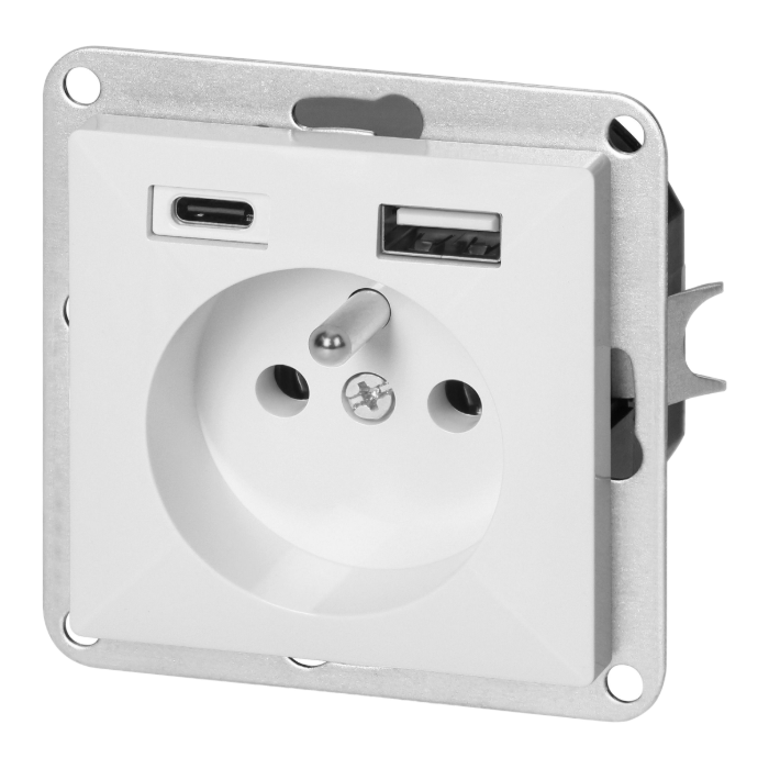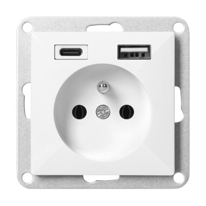 Gniazdo podtynkowe, z uziemieniem Orno OR-OE-7705/USBAC/W z 2 portami USB (1x USB-A, 1x USB-C)