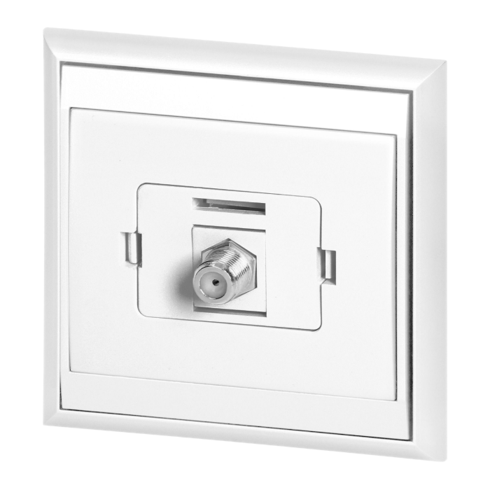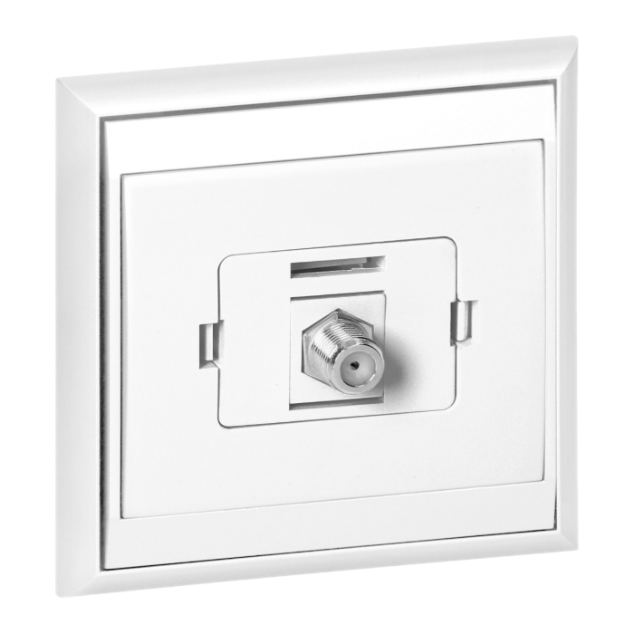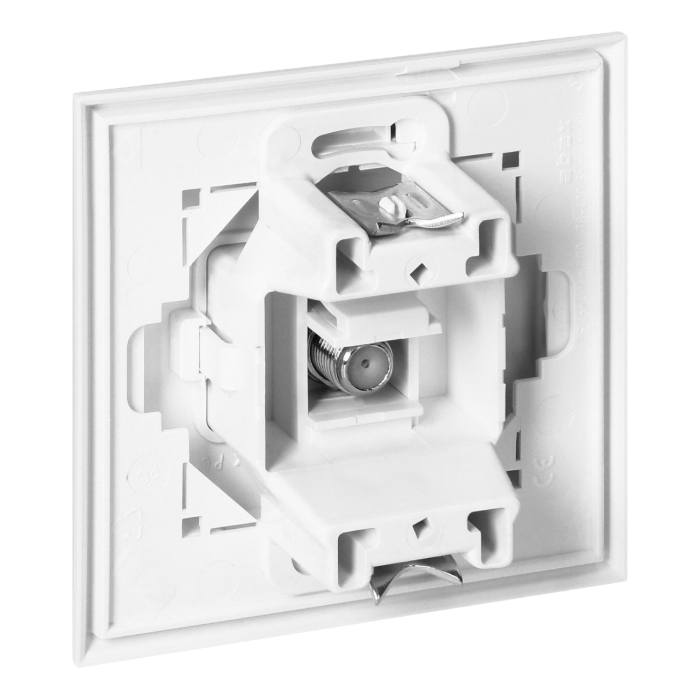 Gniazdo pojedyncze typu F Orno OR-OE-7614/W umożliwia połączenie 1 odbiornika w systemach telewizyjnych, kablowych lub satelitarnych.