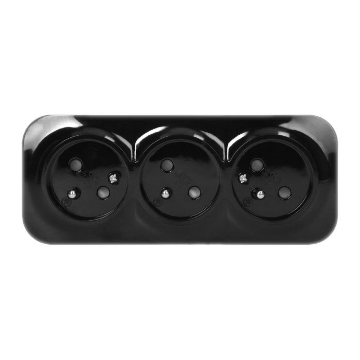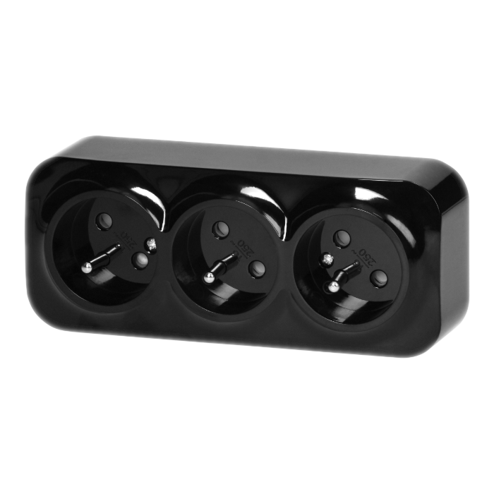 Gniazdo potrójne (3x 2P+Z) ToDo Orno OR-OE-7209/B służy do montażu natynkowego. Posiada klasę szczelności IP20, więc może być stosowany wewnątrz pomieszczeń.