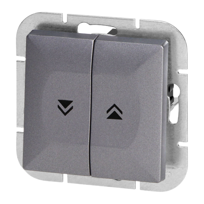 Łącznik roletowy / żaluzjowy Orno OR-OE-7708/A przeznaczony jest do sterowania silnikiem rolety/żaluzji. Posiada 2 odrębne przyciski (góra i dół) oraz zabezpieczenie uniemożliwiające uruchomienie ich jednocześnie.