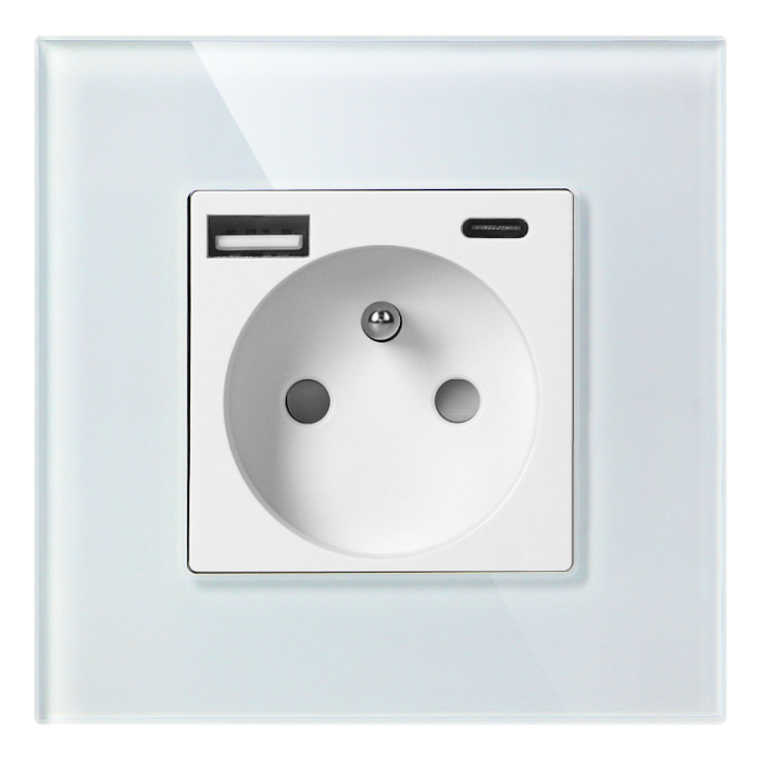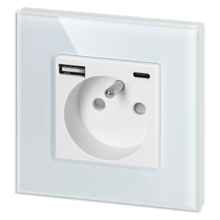 Gniazdo pojedyncze Orno OR-AE-13308/W z uziemieniem i 2 portami ładowarki USB