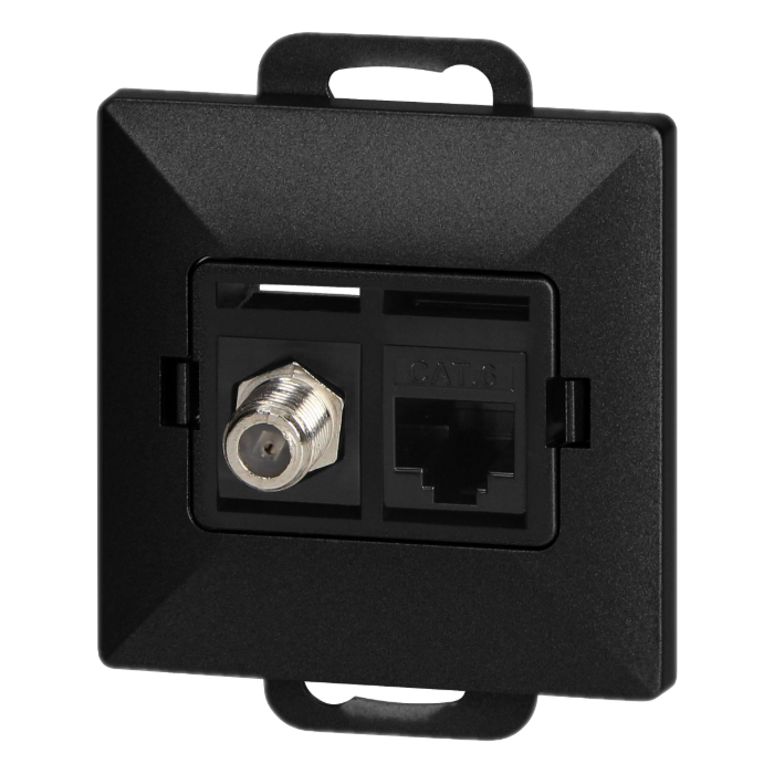 Gniazdo komputerowe (1xRJ45) cat.6 + wtyk F Orno OR-OE-7718/B umożliwia połączenie jednego przewodu ze złączem F.