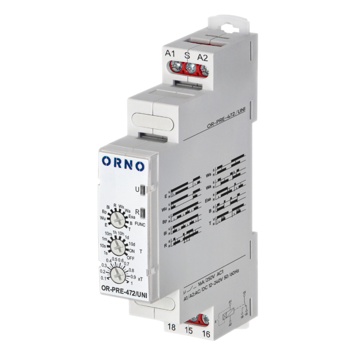 Przekaźnik czasowy Orno OR-PRE-472/UNI umożliwia sterowanie działaniem innego urządzenia lub obwodu przez określony czas. Maksymalna moc obciążeniowa wynosi 4000VA.