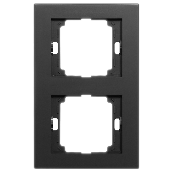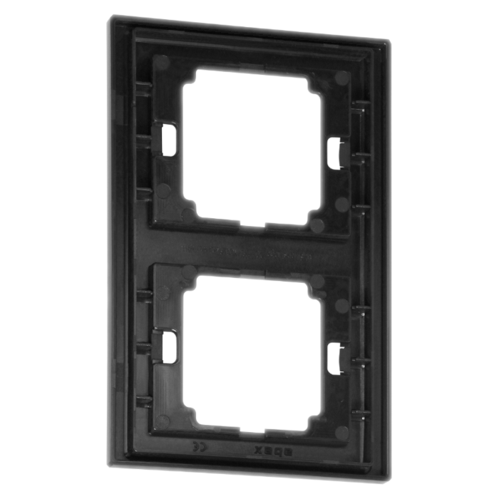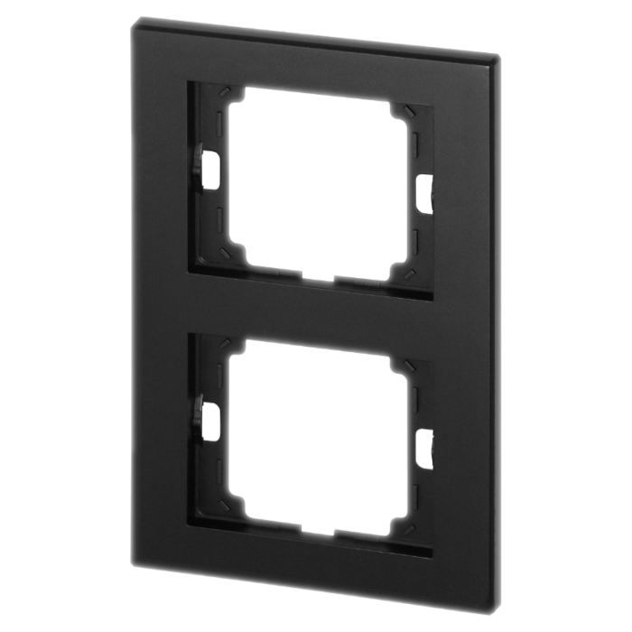 Ramka Orno OR-OE-7520/2/V/B przeznaczona jest do montażu 2 gniazd lub łączników Orno z serii ONYX w pozycji pionowej.
