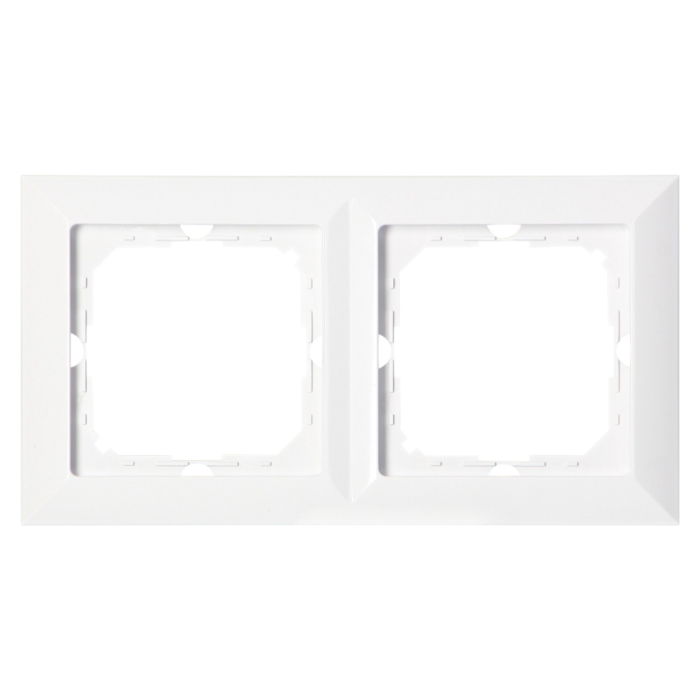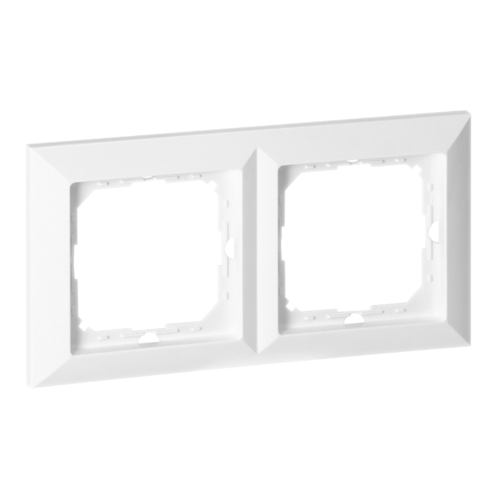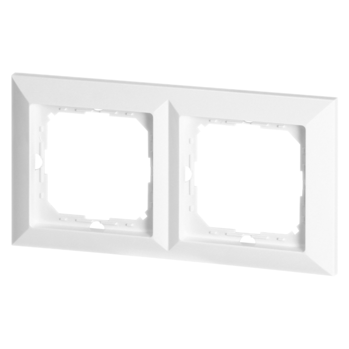 Ramka Orno OR-OE-7720/2/W przeznaczona jest do montażu 2 gniazdek lub łączników Orno z serii PEARL w pozycji pionowej lub poziomej.