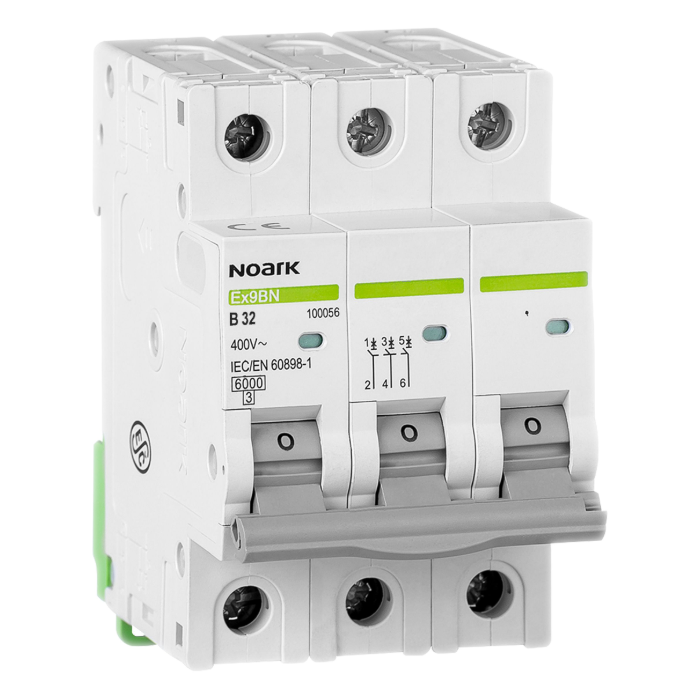 Wyłącznik nadprądowy Noark EX9BN 3P B32 służy do ochrony instalacji elektrycznych przed przeciążeniem i zwarciem. Znajduje zastosowanie w instalacjach domowych oraz w obiektach użytkowych.