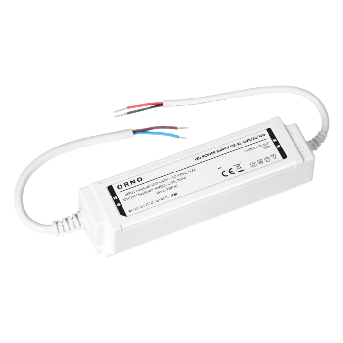 Zasilacz Orno OR-ZL-1678/24/100 umożliwia zasilanie różnych systemów oświetleniowych LED (np. taśm, listew, modułów itp.).