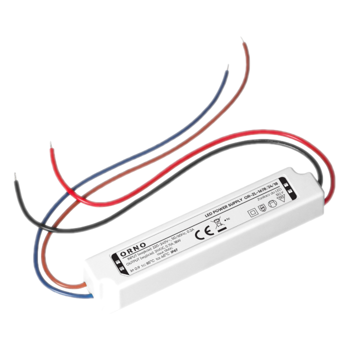 Zasilacz Orno OR-ZL-1678/24/18 umożliwia zasilanie różnych systemów oświetleniowych LED (np. taśm, listew, modułów itp.).