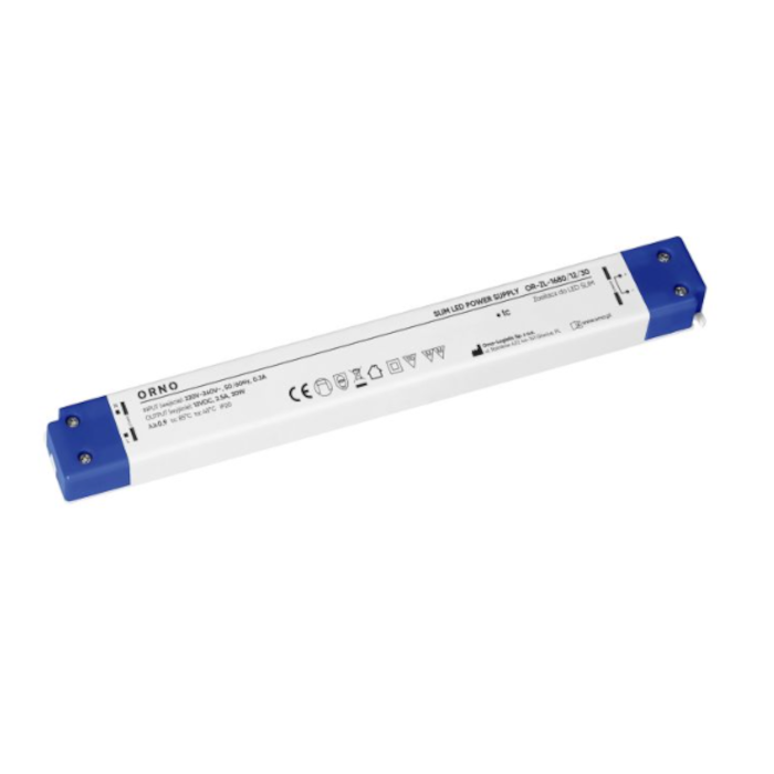 Kompaktowy zasilacz meblowy OR-ZL-1680/12/30 LED 12 V / 30 W umożliwia estetyczne i niewidoczne zasilanie oświetlenia LED w elementach wyposażenia, takich jak szafki kuchenne, witryny, garderoby czy biurka.