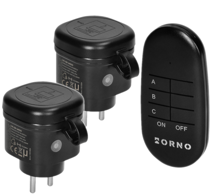 Zestaw gniazd Orno OR-GB-460 służy do bezprzewodowego sterowania (tj. włączania / wyłączania) urządzeń elektrycznych wewnątrz i na zewnątrz (np. lamp, oświetlenia zewnętrznego, wentylatorów, klimatyzatorów, zraszaczy, oczek wodnych itp.) za pomocą pilota (nadajnika).