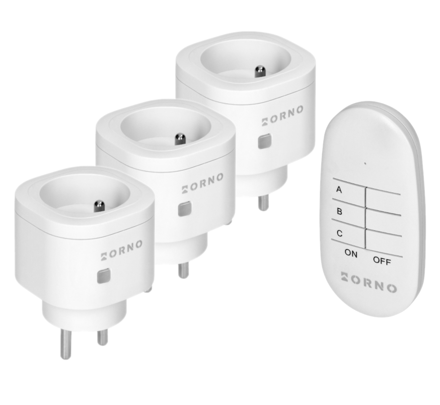 Zestaw gniazd Orno OR-GB-463 służy do bezprzewodowego sterowania (tj. włączania / wyłączania) urządzeniami elektrycznymi (np. lamp, TV, wentylatorów, klimatyzatorów itp.) za pomocą pilota (nadajnika).