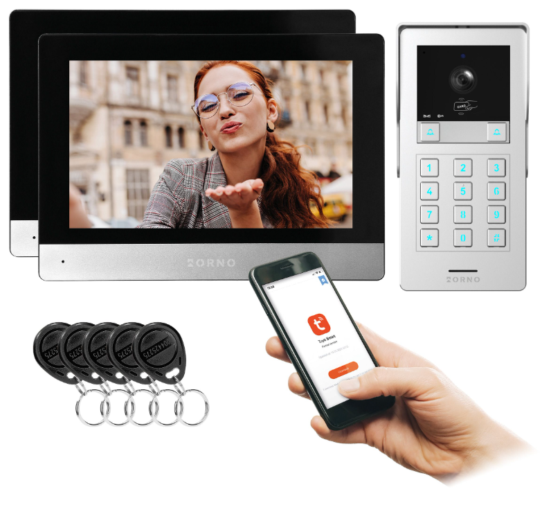 Sterowanie wideodomofonem możliwe jest z dowolnego miejsca na świecie - pod warunkiem dostępu do internetu. Wymagana jest do tego celu aplikacja Tuya Smart (system Android / iOS). Umożliwia ona również otrzymywanie powiadomień o zdarzeniach i dostęp do nagrań.