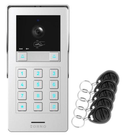 Panel zewnętrzny zapewnia możliwość prowadzenia rozmów z osobami przy wejściu i ich obserwację na żywo dzięki kamerze Full HD. Podświetlenie nocne IR LED zapewnia bezpieczeństwo także po zmroku, a czytnik RFID pozwala na wygodny dostęp za pomocą kart i breloków zbliżeniowych RFID. Dodatkowym atutem jest szyfrator, który umożliwia dostęp do obiektu za pomocą kodu.