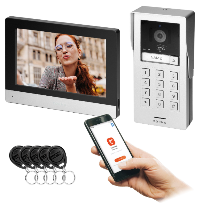 Sterowanie wideodomofonem możliwe jest z dowolnego miejsca na świecie - pod warunkiem dostępu do internetu. Wymagana jest do tego celu aplikacja Tuya Smart (system Android / iOS). Umożliwia ona również otrzymywanie powiadomień o zdarzeniach i dostęp do nagrań.